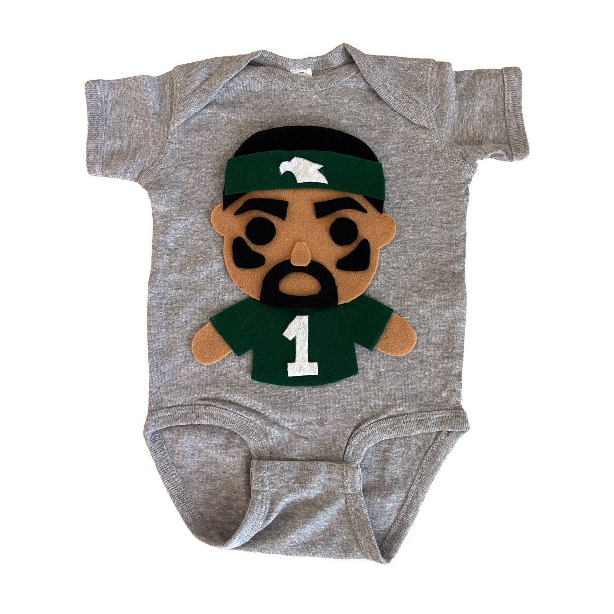 Your little ones will love representing one of the best QB's #1!I cut out felt pieces and they are appliquéd to the shirt. This infant bodysuit is made to order. It is handmade & hand-stitched with 100% love by me in Paradise!